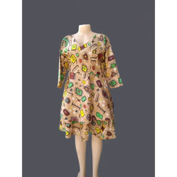 Step into the spotlight with the Imara EthnoArt V-Neck Dress, where fashion meets storytelling. Featuring a tapestry of symbolic motifs eyes, suns, arrows on a soft beige canvas, this long-sleeved dress is a celebration of heritage, creativity, and individuality. Designed for the bold and the expressive, it’s perfect for those who wear their identity with pride.