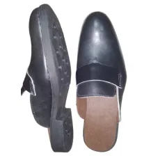 Sleek black leather open-back shoes with a smooth finish and cushioned insole. Ideal for easy wear while maintaining a smart, polished look