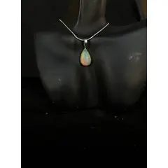 white base natural Ethiopian welo opal with excellent play of color. Wear the natural Ethiopian Opal necklace and watch compliments roll in. Eye-catching design and shimmering opal will capture the admiration of everyone you meet. Pendant dimensions- round shap