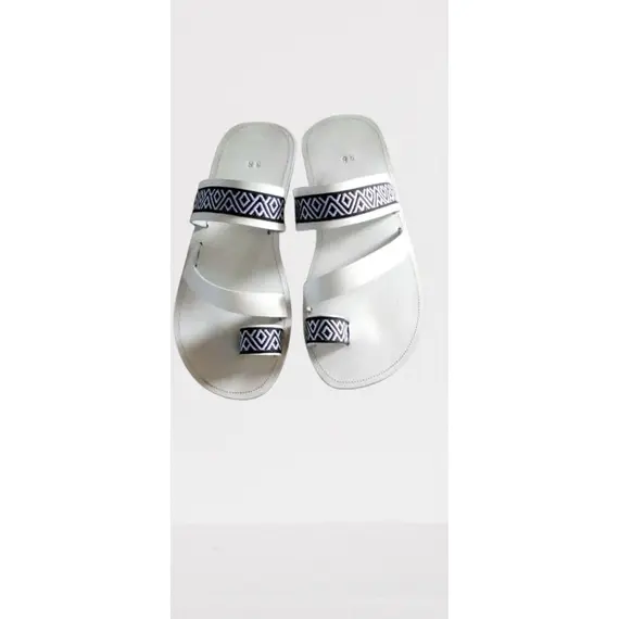 White Color Sandals with Criss-Cross Imigongo Design – Unisex Summer Leather Sandals