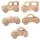 Wooden Toys are one set is five different cars with width 7 cm and 3.2 cm thick and 3.5 cm height with wood color smooth and good finishing