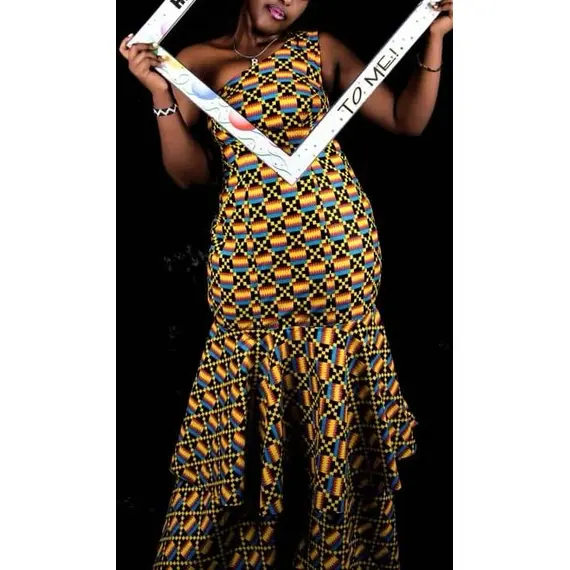 IG WEAR Rwanda Ltd Off-Shoulder Long Kitenge Dress – Made in Rwanda, Perfect for Spring, Summer, and Autumn