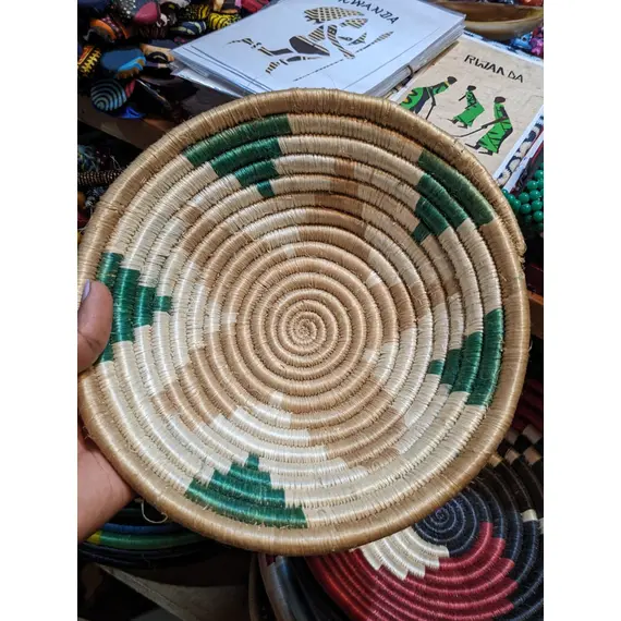 MUNYANA Small Round Handknitted Wicker Basket – Brown & Green Mix Rattan Serving and Organizer Tray