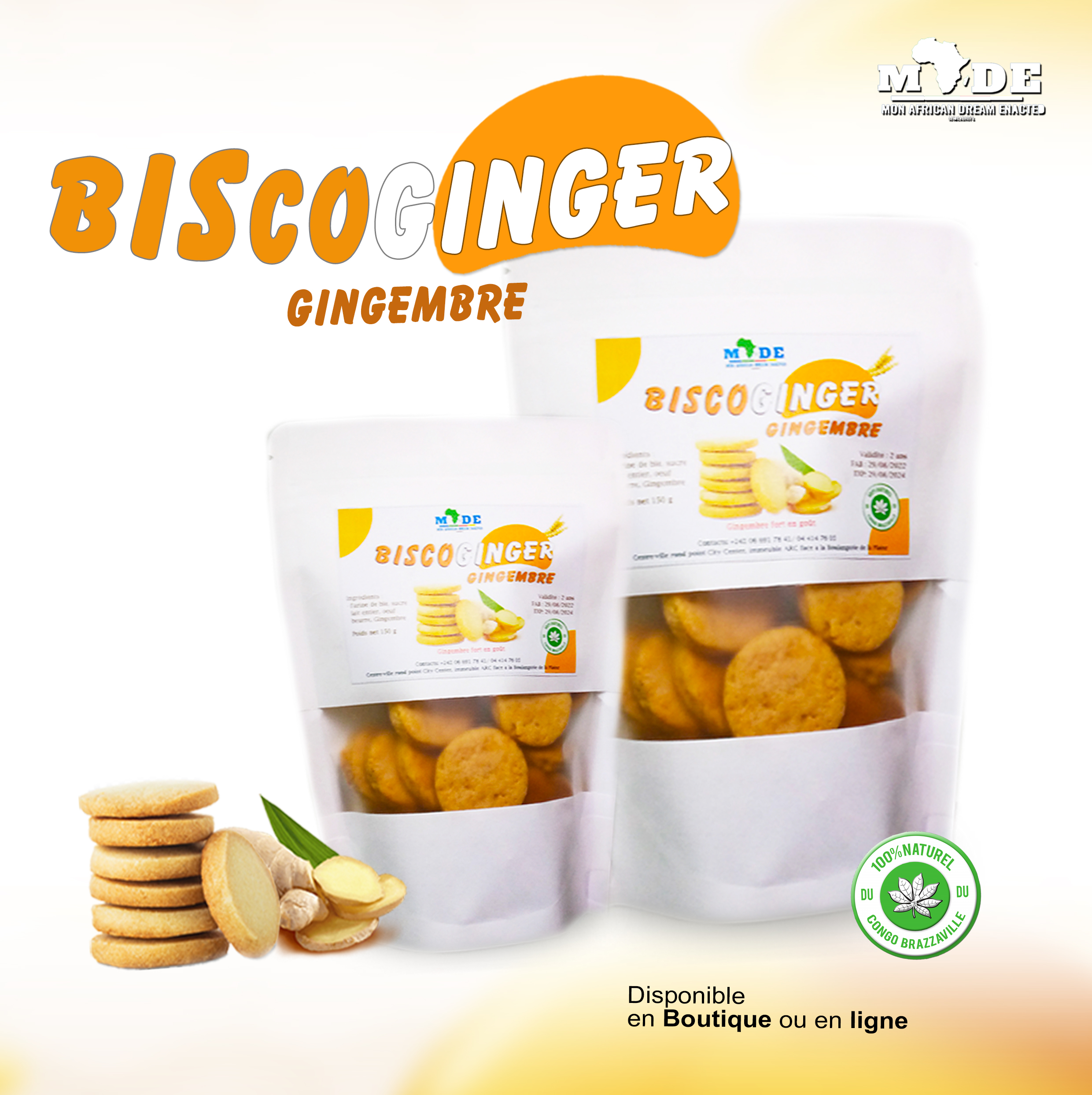 Savourez notre BiscoGinger, un délice croustillant élaboré à partir de farine de blé, de lait entier et de gingembre. Chaque bouchée est une explosion de saveurs, tout en étant naturellement riche en nutriments essentiels comme le manganèse, le phosphore, le magnésium, le calcium, le sodium et le fer.