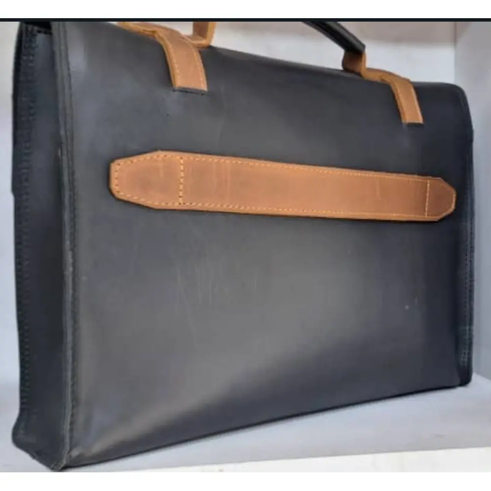 Premium Craftsmanship: Expertly handcrafted from 100% genuine leather with brass hardware, offering exceptional durability and a polished look.Spacious & Organized: Features a roomy main compartment, side pockets, and a multifunction interior to neatly organize your laptop, documents, and essentials.Laptop Protection: Includes a thick padded laptop compartment, ensuring your devices are secure and protected during commutes or travel.Sophisticated Design: Black leather with a stylish brown stripe creates a professional aesthetic suitable for office, business meetings, and travel.Versatile Usage: Perfect as a laptop briefcase, work bag, or travel companion, combining practicality with elegance for professionals on the go.