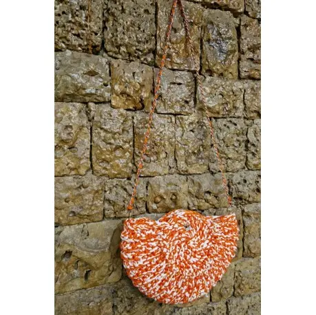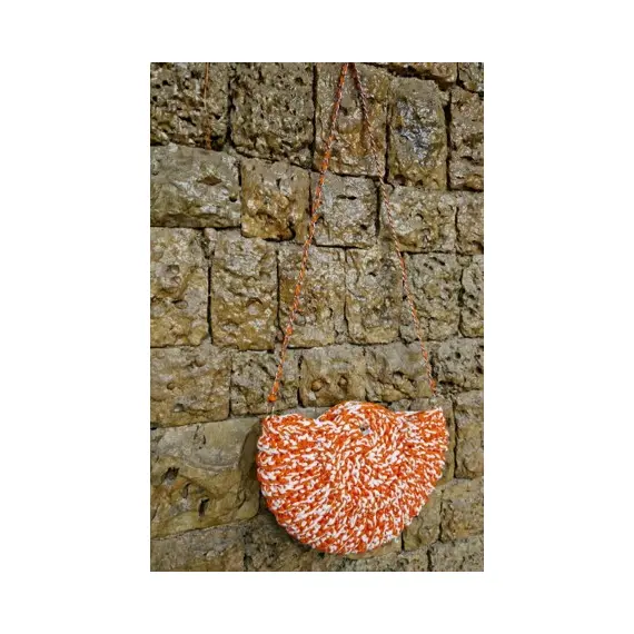 FENET CROCHET Vibrant Vibrant Orange & White Design Knit Crossbody Bag