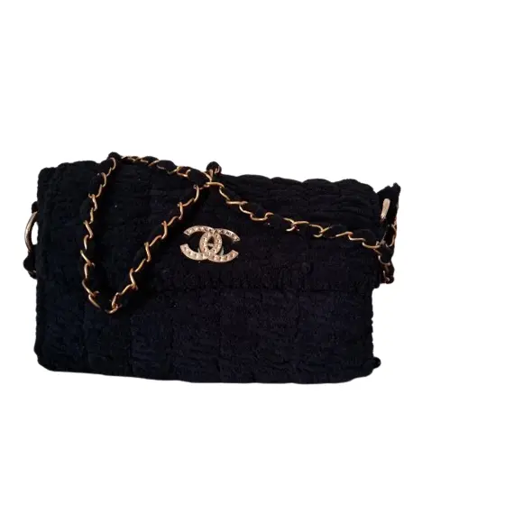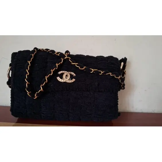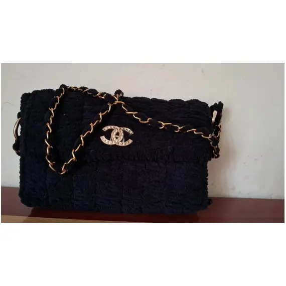 Luxurious FENET CROCHET Dark Velvet Shoulder Bag – Handmade Fur Design