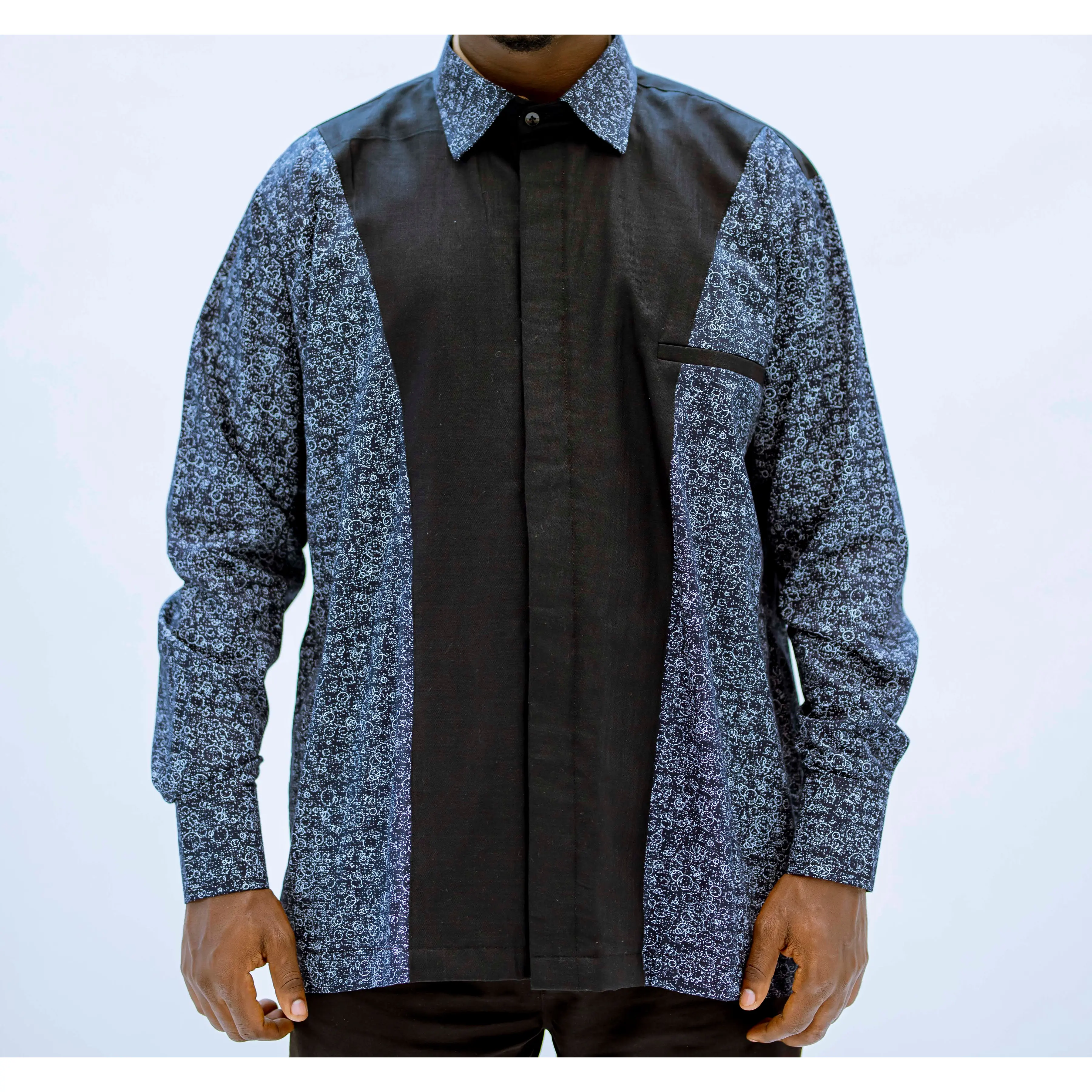 Minimum quantity for "BYOSE IWACU Dark Blue Printed Men's Button-Down Shirt – Long Sleeve, Vintage & Office-Ready" is 1.