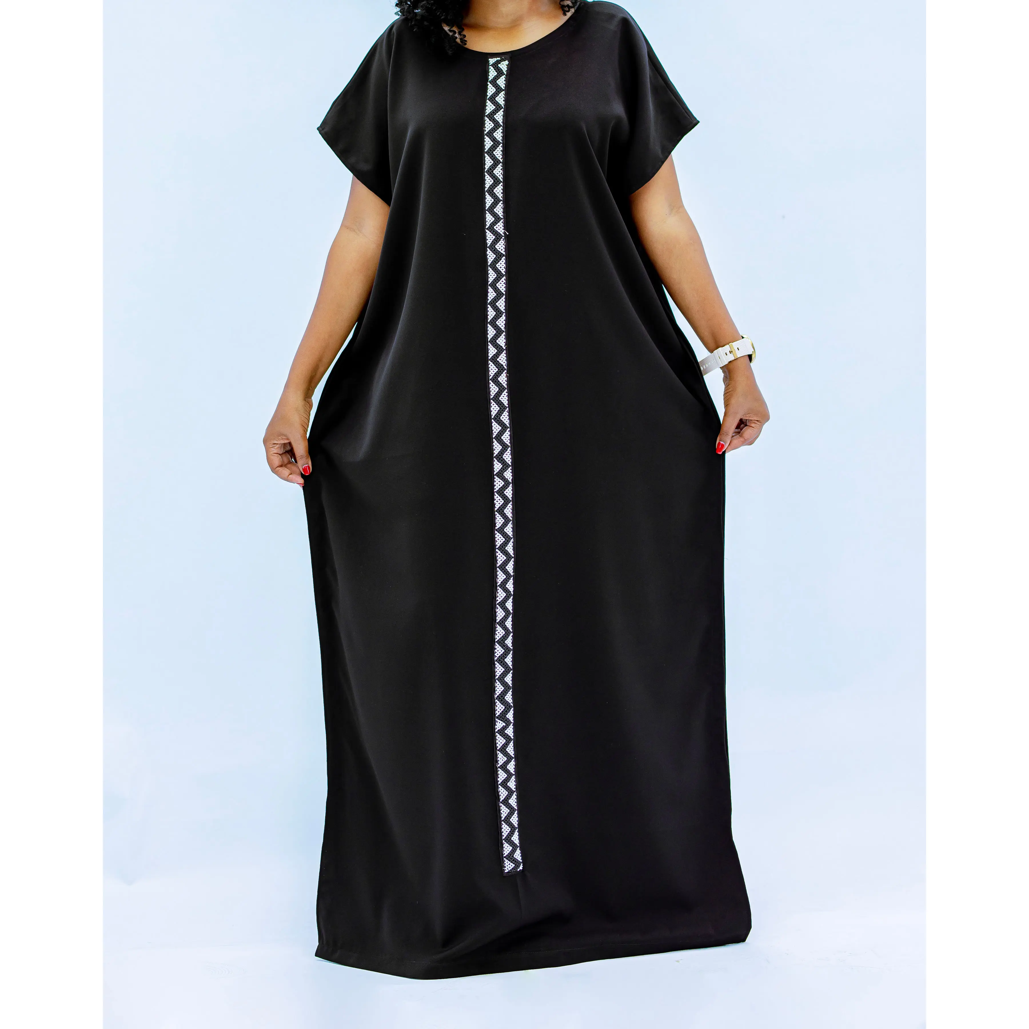BYOSE IWACU Women's Elegant Black Kaftan Robe with Imigongo Lining - Loose Fit Dashiki Long Dress for Casual & Evening Wear