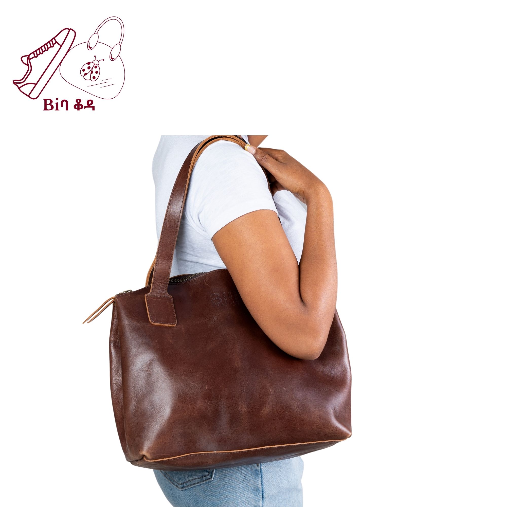BIBA Meki Spacious Leather Tote – Double Zipper Design. One of our finest and most spacious bags — built for carrying more with confidence and style.