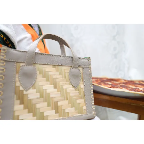 This is an elegant, authentic, and classic bag of premium quality. The main body is made of a well polished bamboo mat high quality Ethiopian leather, and The inner part has cotton lining with one pocket.