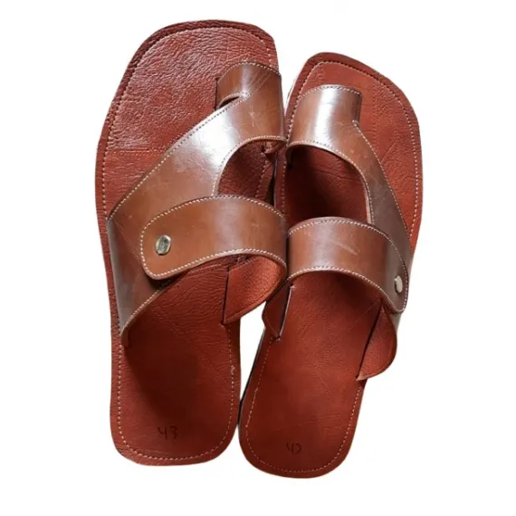 Experience comfort and classic style with these Men's Brown Leather Sandals. Handcrafted from genuine leather, they are durable and designed for a perfect fit. The rich brown color and polished finish give them a sophisticated look. With a sturdy, stitched sole, these sandals are great for everyday wear, a day at the beach, or a casual outing.